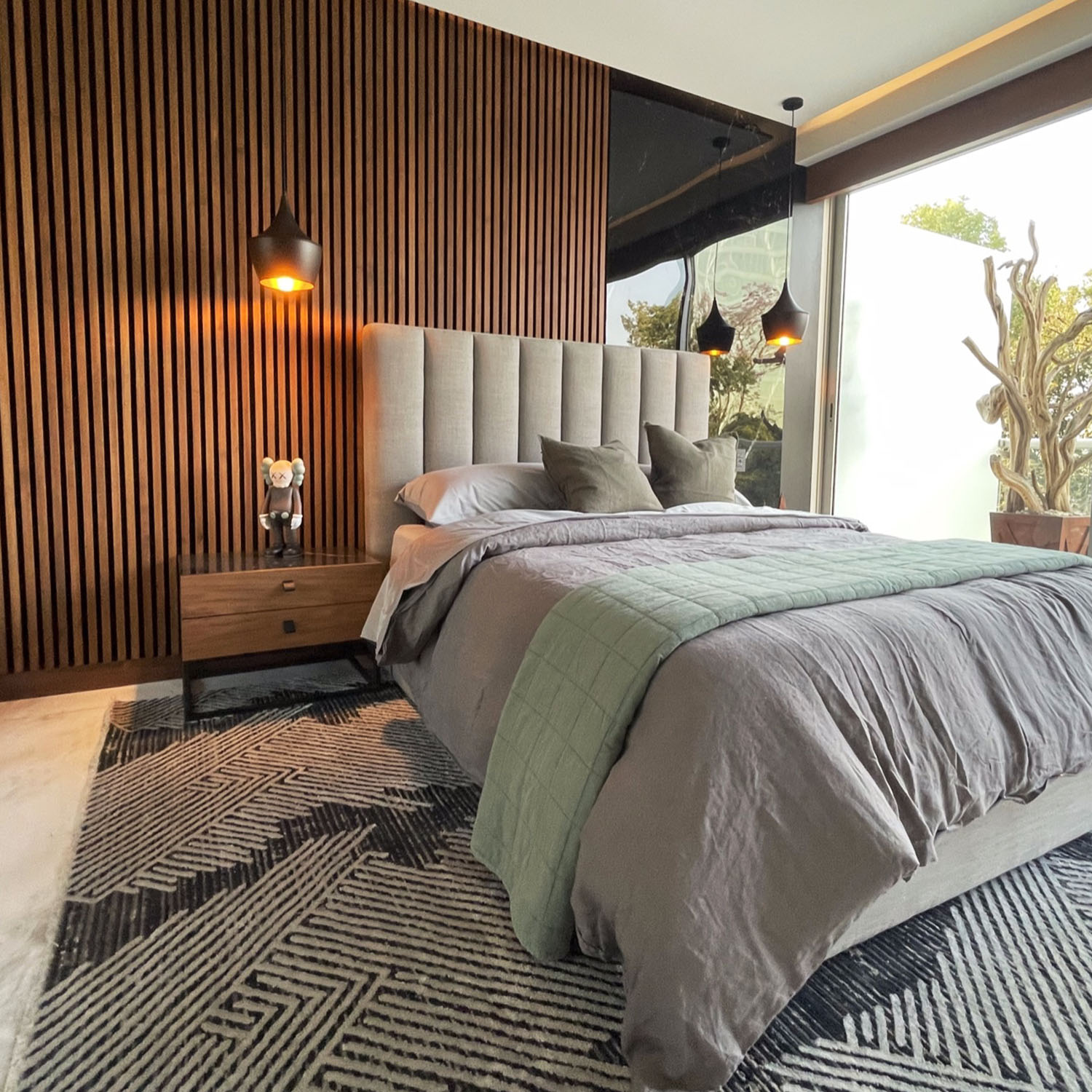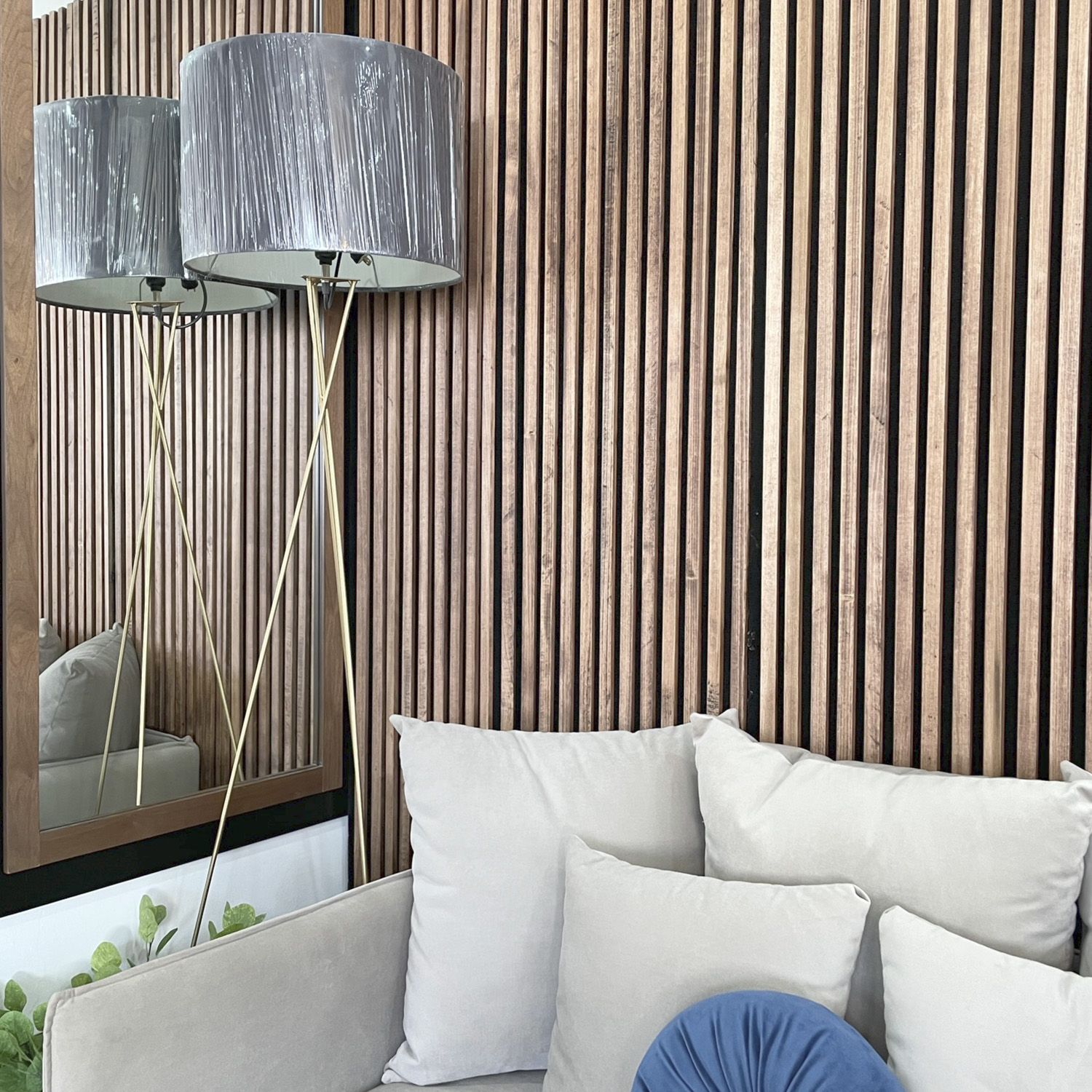 Rollo de lambrin fabricado con madera sólida de poplar en 4 diferentes acabados, sobre textil color negro, el textil tiene retardante al fuego. 2.40 mt .90 mt